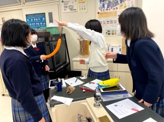 大学入試における理系女子の増員を背景として、中学1年次に理科に興味関心を持った生徒を対象に、中学2年次より「サイエンス探究クラス」を編成します。中学2年では、さらに理科に関する興味関心を深め、仮説を立てて実験を計画するなど、アクティブサイエンスよりも理科に関して深い探究をおこないます。そして、中学3年では理系女子の第一ステージとして高校の内容も取り入れながら、理系への興味関心をさらに深めていきます。興味を持ったサイエンス分野で深い探究をおこなうことで、高校での文理選択時に理系にも対応できる生徒を育成し、将来的には希望する理系の大学に進学できるように取り組んでいます。