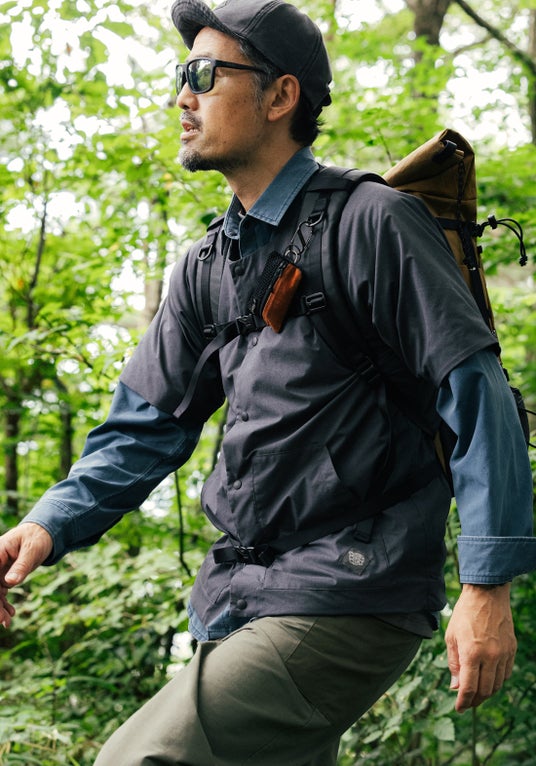 高基準の耐水性と透湿性を持ちながら3レイヤーとは思えない「薄さと柔らかさ」を持った防水素材のフィールドジャケット。