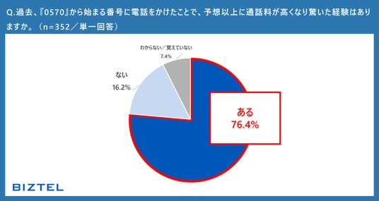 ・0570番号を利用し、「想像以上に通話料が高くて驚いた」と回答した人は76.4%。