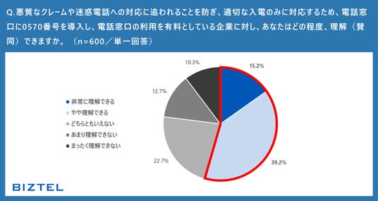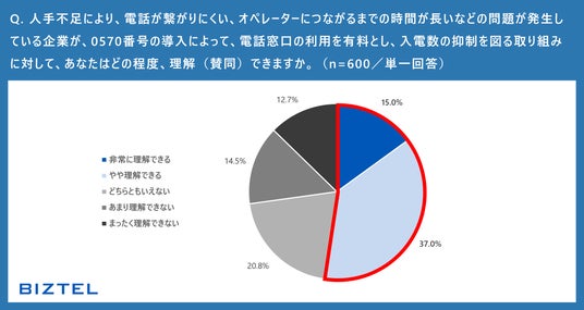 一方で、0570番号を採用する企業に対して、その採用背景に悪質クレームへの対策や人手不足による入電数の適正化など、合理的な理由がある場合には、2人に1人が0570番号の採用を「理解できる」と回答しています。