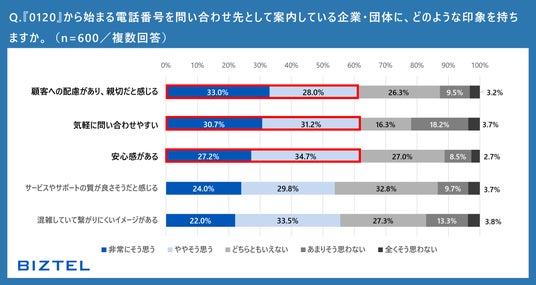 ・0120番号を利用する企業には、「顧客配慮」や「安心感」を感じる人が約6割にのぼった。