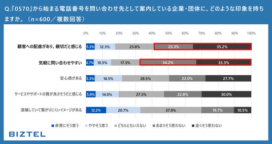 ・一方、0570番号を利用する企業には、「問い合わせのしにくさ」や「顧客への配慮不足」を感じる