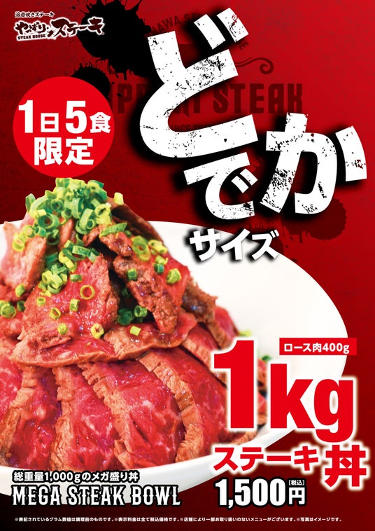10月1日の価格改定に合わせてグランドメニューに「1kgステーキ丼」が新たに登場!
