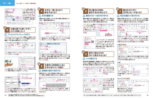 エクセル編、ワード編のそれぞれで、困ったときの対処法がわかるQ&Aを収録しています。操作をしていて抱きがちな疑問や、知っているとさらに便利になるTipsなどが多数収録されており、さらなるスキルアップに役立ちます。