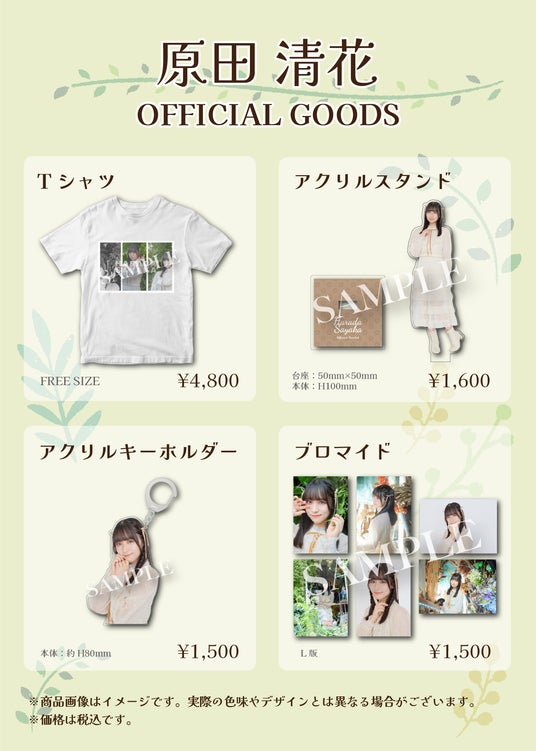 今回販売されるアイテムは、すべて原田清花セルフプロデュース。