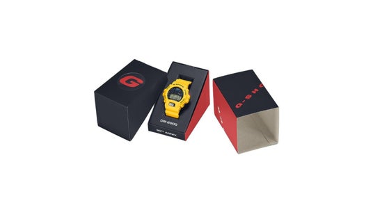 「G」マークをモチーフにしたDW-6900Hのパッケージデザインをオマージュ。ブラック、レッド、イエローの3色を取り入れたスペシャルデザインに仕上げました。