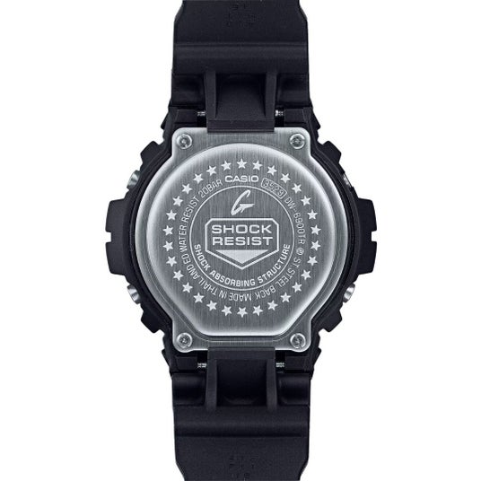 SHOCK RESISTマークを刻印した裏蓋に、6900シリーズ誕生30周年を記念した★マークを30個レイアウト。アニバーサリーイヤーを飾る特別仕様のデザインです。