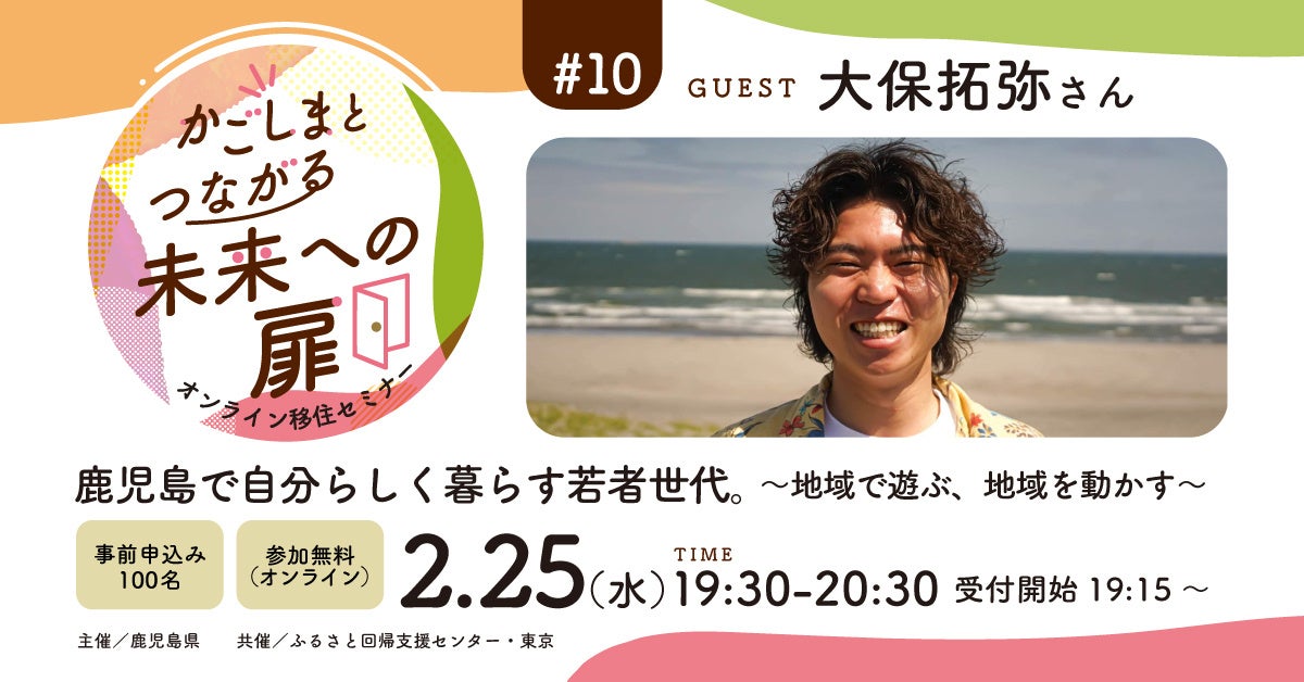 株式会社みらいワークス(本社:東京都港区、代表取締役社長 岡本 祥治)は、2026年2月25日(水)鹿児島県から受託した事業の一環で、オンライン移住セミナーを開催します。