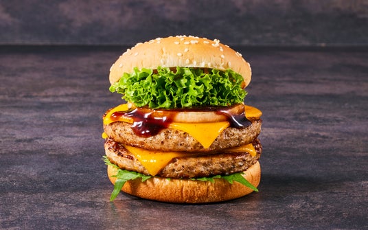 W神戸牛チーズバーガーは、コクのあるとろーりレッドチェダーチーズを2枚に増量。