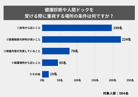 アンケート2:健康診断や人間ドックを受ける際に重視する場所の条件は何ですか?
