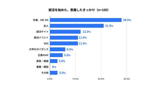 - 就活開始のきっかけは「先輩、OB・OG」が最多、就活の早期化に拍車か