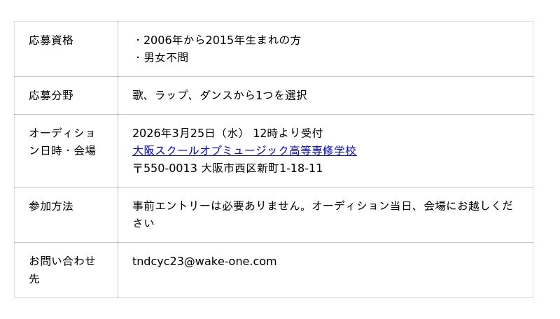 - WAKEONE オーディション 概要