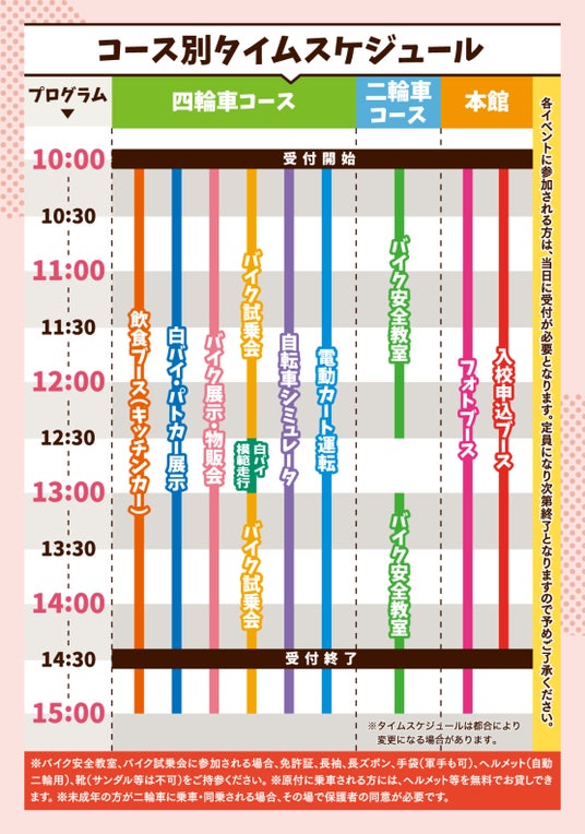 モラルやマナーを身につけた「安全な運転者の育成」に力を注ぎ、地域の安全活動も推進し、快適・安全な社会づくりを目指しています。また、普通車・二輪車の免許取得だけでなく、高齢者講習、ペーパードライバー講習、企業様向け安全講習など各種講習もご用意しています。 【お子様歓迎】見て、触れて、体験!家族みんなで楽しめるバイクの祭典!