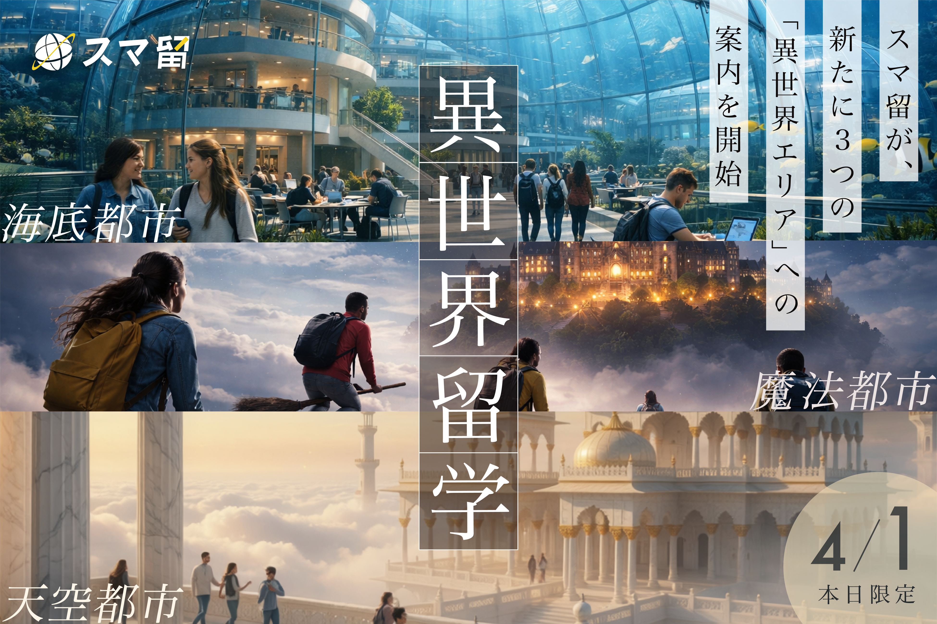 「異世界留学」特設サイト:https://lp.smaryu.com/campaign/aprilfool2026スマ留オリジナルプログラム「異世界留学」3つの都市