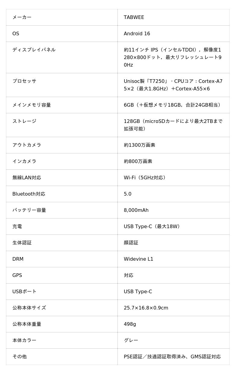 タブレットメーカーのTABWEEは、最新OS「Android 16」を搭載した11インチAndroidタブレット『TABWEE T50』を、2026年1月3日より期間限定のキャンペーン価格15,999円(税込)で販売開始しました!