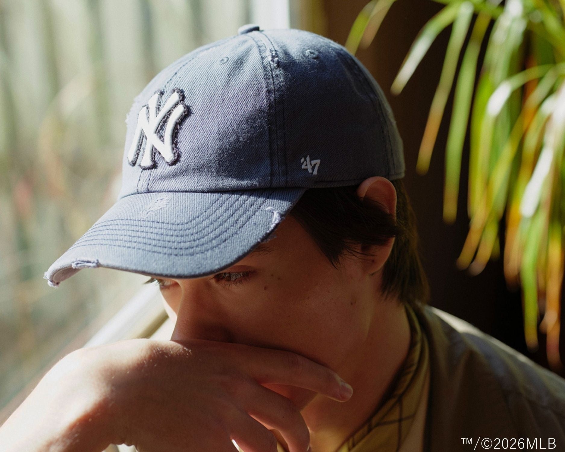 カラーはブルー系、レッド系、チャコールグレー系を中心に展開。落ち着いた色合いとディストレス加工の表情が調和し、幅広いスタイリングに取り入れやすいデザインです。ニューヨーク・ヤンキース、ロサンゼルス・ドジャース、サンディエゴ・パドレス、ボストン・レッドソックス、シカゴ・カブスなどMLB球団のロゴを採用し、クラシックなチームロゴとヴィンテージライクな加工が組み合わさり、スポーツカルチャーとファッションの魅力を感じられるコレクションに仕上げています。