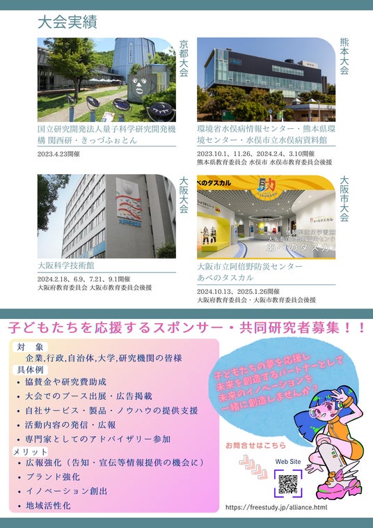 子どもたちの研究のサポート、研究テーマに関するアドバイス、共同開発など、多様な形で研究にご参加いただき、子どもたちの自由な発想と情熱を育み、未来のイノベーションを共創していただけるスポンサー・共同研究者として参画いただける方々をお待ちしております。