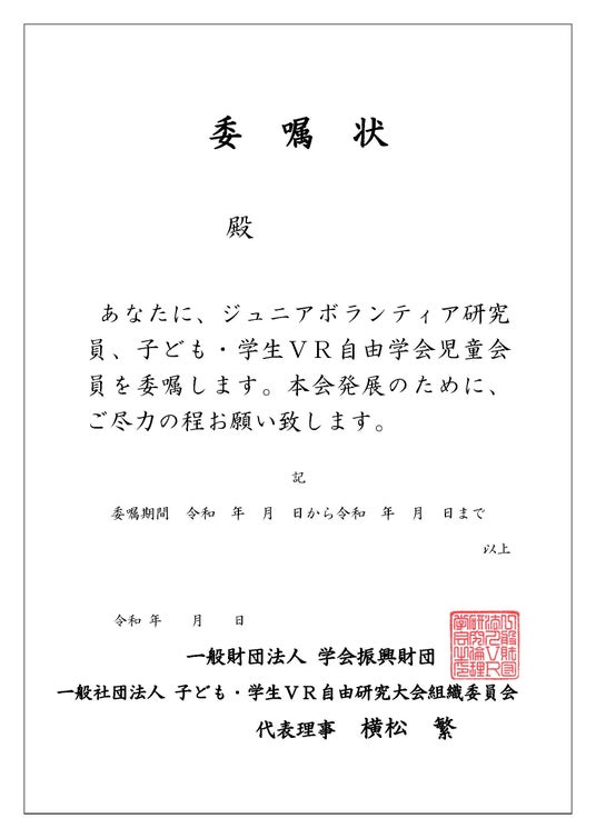 名 称:一般社団法人子ども・学生VR自由研究大会組織委員会