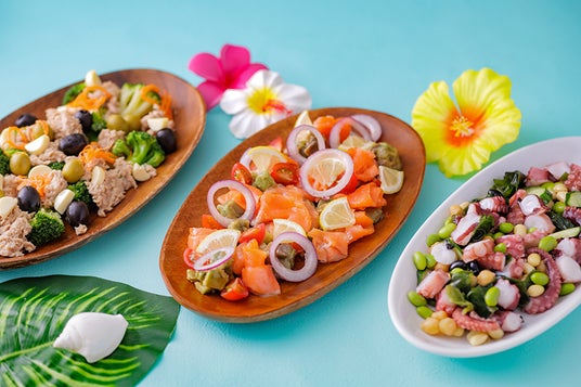 サーモンとアボカドのポキやグルマン海鮮サラダや、ハワイアンポキメニューなど南国の風を感じるさっぱりメニューが目白押し。枝豆やチーズなど定番おつまみも忘れていません。
