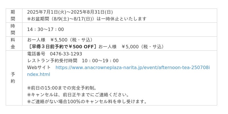 電話番号:0570-550-787URL:https://www.anacrowneplaza-narita.jp