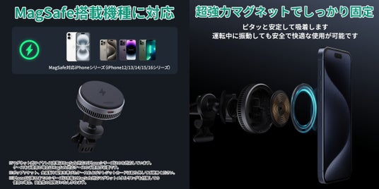充電関連商品のグローバルトップブランドAukey Technology Co., Ltd.(以下「AUKEY」)は、2024年11月22日(金)より、MagSafe搭載iPhoneシリーズの充電に最適で、冷却機能を搭載した車載ワイヤレススマホホルダー「MagFusion Dash Pro」を国内の大手家電量販店および主要ECサイトを通じて販売いたします。
