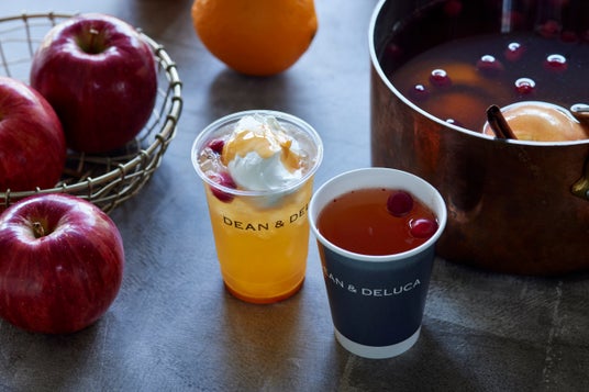 また毎年冬の定番ドリンクとして登場する「アップルサイダー」も同時期に登場。発売当初より変わらず店内で素材から手づくりしている自家製アップルサイダーは、大きな鍋に丸ごとのりんご、オレンジ、クランベリー、シナモン、ジンジャー、スターアニス、アップルジュースを入れて、弱火でコトコト煮込みます。時間が経つにつれて、DEAN & DELUCAの店内では甘くスパイシーな香りがただよい、ホリデーシーズン到来を告げる風物詩となっています。