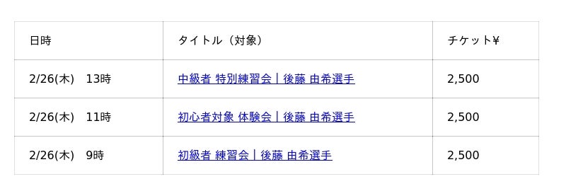 【リリース概要|後藤 由希 選手による 初心・初級・中級 練習会】
