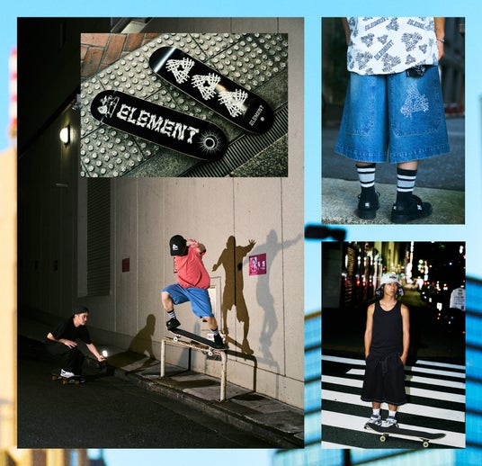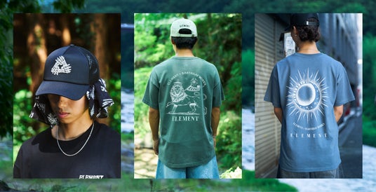 本コレクションは、スケートボードブランド Element と Barthday Works によるコラボレーションとして誕生。Element のルーツである“自然”と“ストリート”の融合をコンセプトに、チームライダーの星野玄翔(ほしの はると)がデザイン監修を担当。シーンを体現するリアルな感性を落とし込み、アートとスケートボードを繋ぐコレクションとなっている。