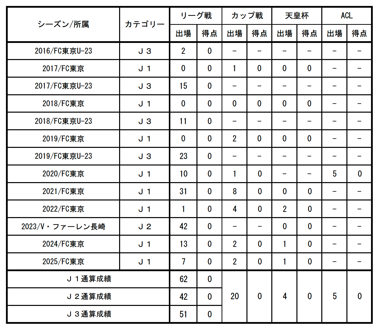※2016シーズンはFC東京 第2種登録選手としてプレー
