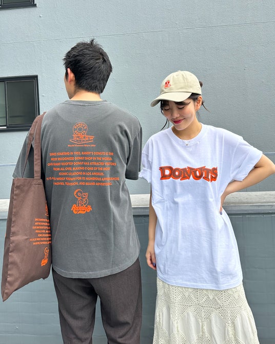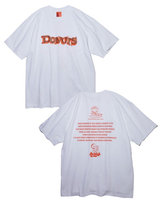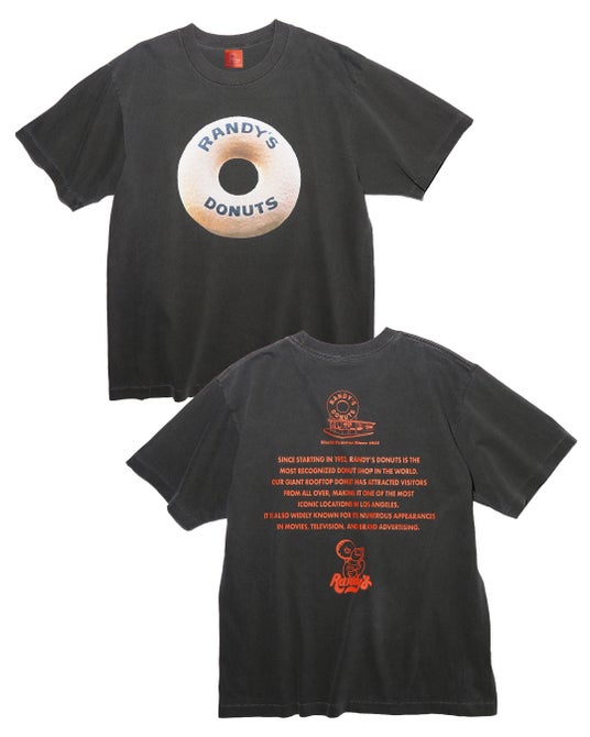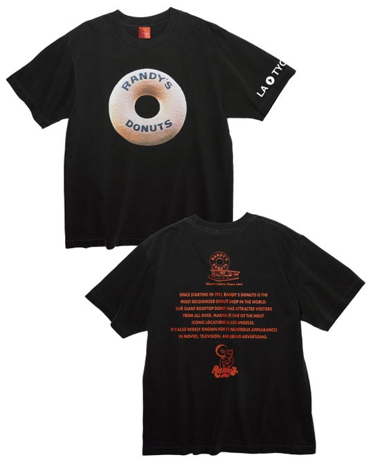 LAのランドマークである米国「ランディーズドーナッツ」1号店の屋根上にそびえ立つ巨大なドーナツ型サイン看板を大胆にプリントしたTシャツ。バックには「ランディーズドーナッツ」のコンセプト、左袖には“LA→TYO”をデザインしました。5.7オンスの綿100%のミディアム生地を使用。適度なルーズ感があるシルエットのため、ユニセックスでお楽しみいただけます。