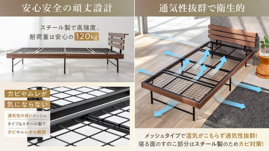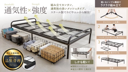 <通気性×強度を兼ね備えた、収納上手なベッド>