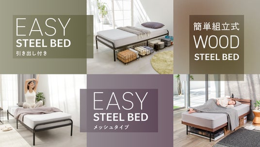 デザイン性と組み立てのしやすさを兼ね備えた「簡単組立式 ウッドスチールベッド」、軽くて組み立てが簡単で、耐久性と清潔さに優れた「イージースチールベッド メッシュタイプ」、シンプルかつ収納力抜群の「引き出し付き イージースチールベッド メッシュタイプ」の3商品が新登場しました。
