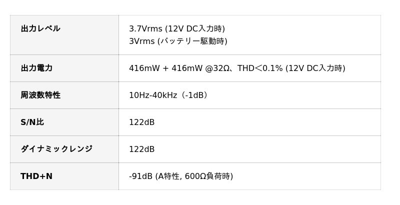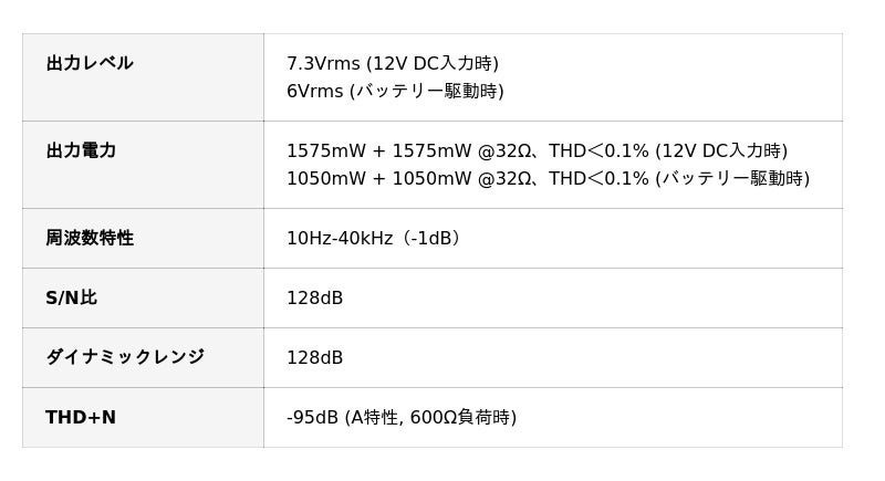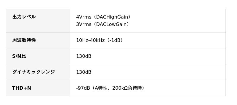 出力系統:4.4mmバランスヘッドホンアウト/ラインアウト、3.5mmシングルエンドヘッドホンアウト、3.5mm同軸、USBデジタル