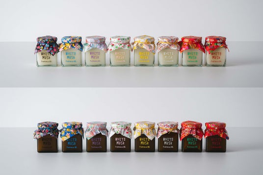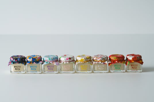 今回のフレグランスジェルは和紙を使って一つ一つ手作業で包み、「WHITE MUSK」の刻印に顔料を塗り入れる丁寧な作業を経て大切な贈り物として出来上がりました。