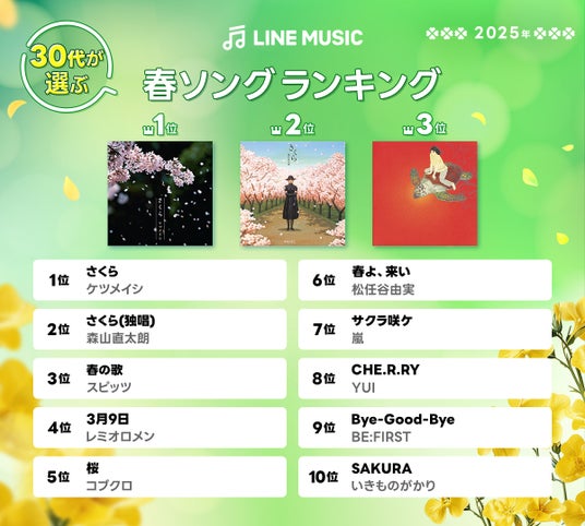 【LINE MUSIC】“春”と言えばこの曲!LINE MUSICが世代別に聞いた、2025年度版「春ソングランキングTOP10」を発表