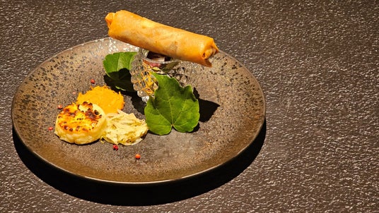 ジビエ(函鹿)の赤ワイン煮込みを春巻きの皮に忍ばせて