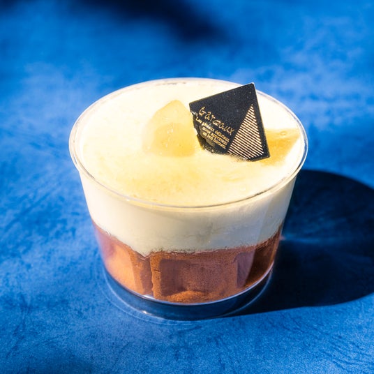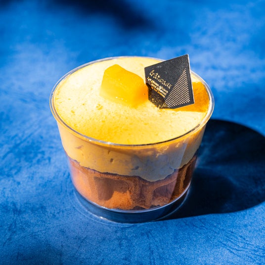 トップにあしらったマンゴーの果肉や、鮮やかな彩りが夏らしいカップデザートです。