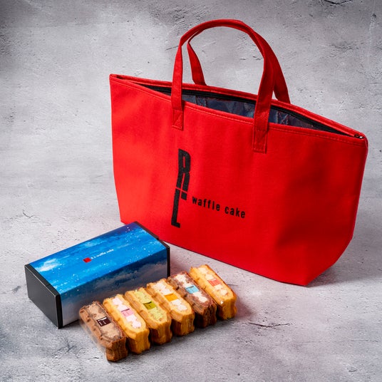 【内容量】 ワッフルケーキ6個(バニラカスタード・抹茶・ストロベリー・メープル・ショコラ・ティラミス 各1個)、保冷バッグ1個