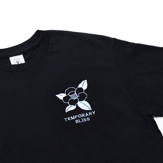 VIEW THE SUNSET                       Long Sleeve Tee | "Romantic Past Voyage" 2nd Drop Items| 新デザイン"TEMPORARY BLISS"が登場。 日本で古くから愛される椿の花。その優美な姿と、散り際のはかなさをデザインに落とし込みました。メッセージ「TEMPORARY BLISS(つかのまの至福)」とともに、過ぎゆく時間の中で感じる至福の瞬間を表現しています。USコットン100%の生地を使用した丸胴ボディは、快適な着心地。Tシャツに加え、新たにロングスリーブTシャツがラインナップに加わりました。カラーは3色、サイズはS~XXLまでご用意しています。  TEMPORARY BLISS Long Sleeve Tee  ¥7,700(税込) SIZE:S, M, L, XL, XXL COLOR: WHITE, BLACK