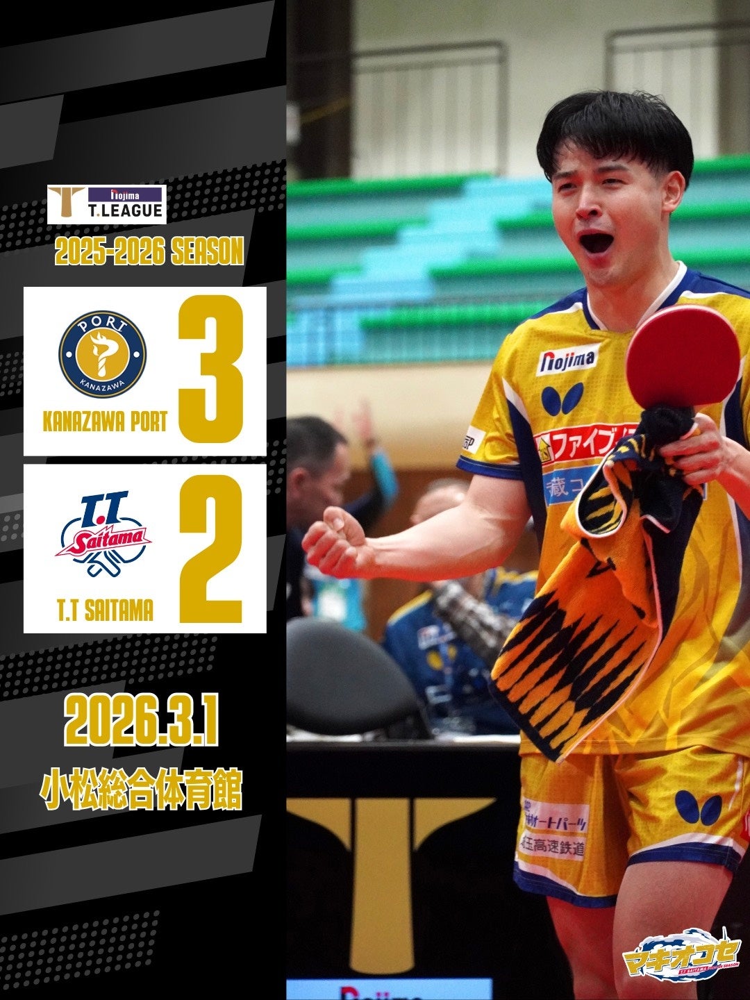 【T.T彩たま】試合結果/ノジマTリーグ 2025-2026シーズン第23戦 vs金沢ポート