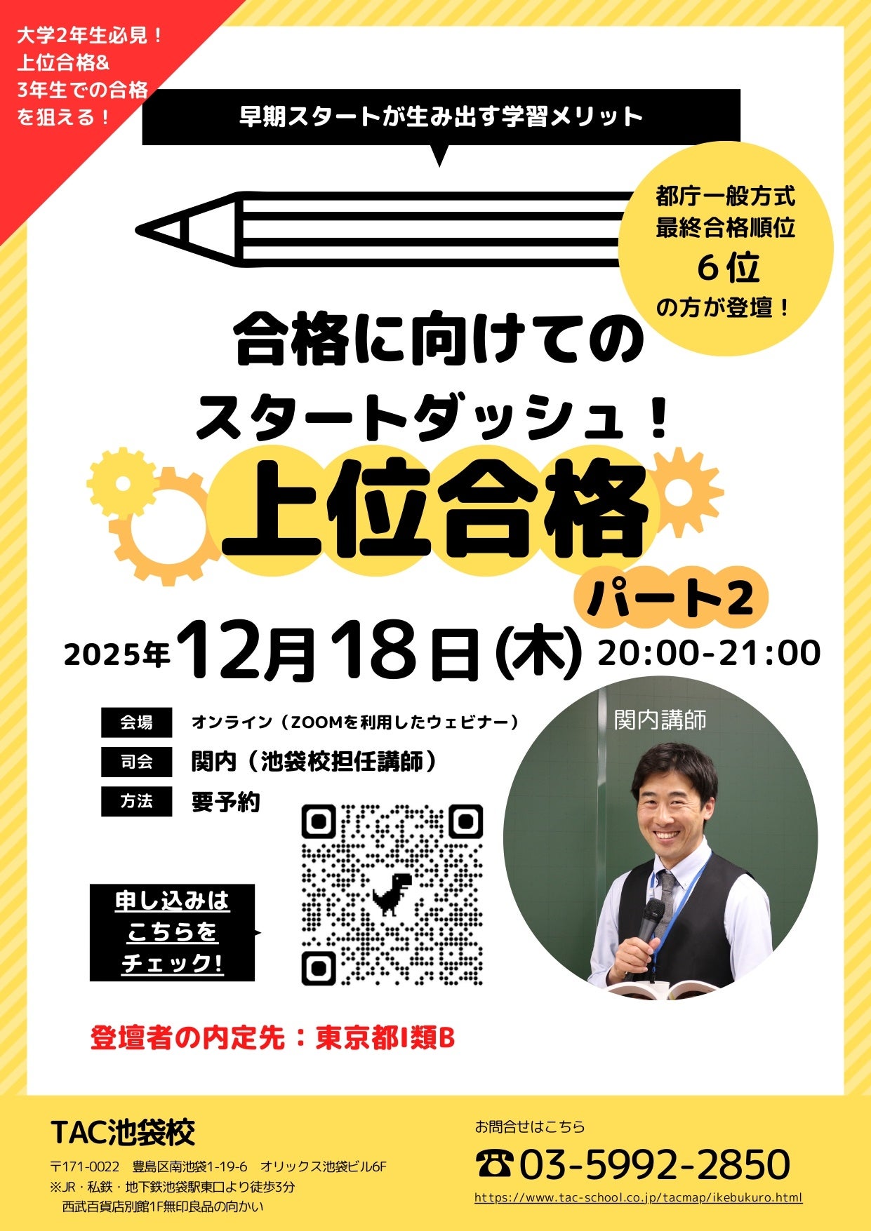 池袋校担任講師に加え、都庁一般方式 最終合格順位6位の方が登壇します!