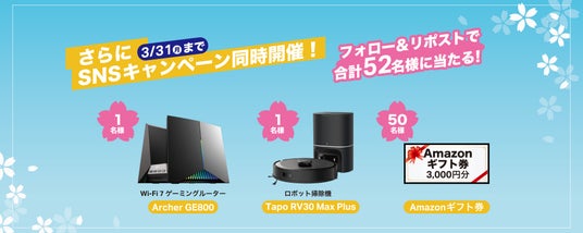 TP-Link Systems Inc.(所在:米国)の日本支社である※、ティーピーリンクジャパン株式会社(所在:千代田区外神田/以下TP-Link)は、3月1日(土)より「新生活応援キャンペーン」を開催いたします。本キャンペーンでは、期間中に対象製品をご購入いただき、応募された方の中から抽選で201名様に「iPhone 16 Pro」や「Amazon ギフト券総額50万円分」などの豪華賞品をプレゼントいたします。ぜひこの機会に、TP-Linkのネットワーク製品を導入し、新生活を快適なネット環境でスタートさせましょう!
