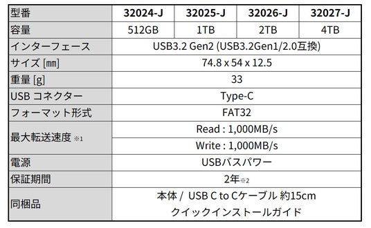 ※1 参考値です。この転送速度を保証するものではありません。※2 本製品の保証は日本国内においてのみ有効です。