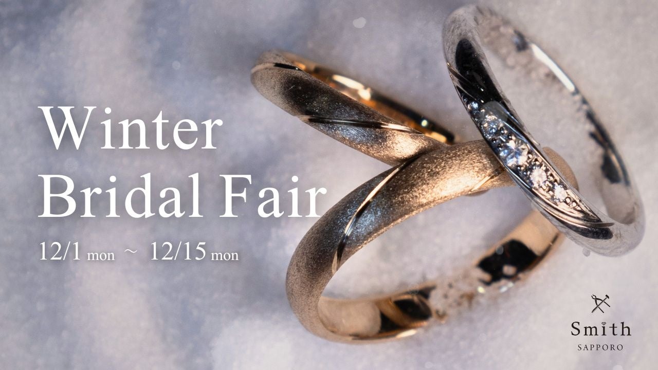 株式会社一宝(所在地:北海道札幌市)が運営する手作り結婚指輪・婚約指輪専門店『工房Smith札幌本店』は、2025年12月1日(月)~12月15日(月)の期間限定で「Winter Bridal Fair」を開催いたします。