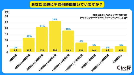 ■全体の26%が週平均「12時間以上18時間未満」バイトをしていると回答。