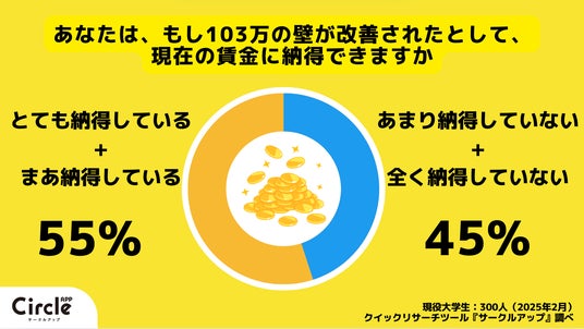 最後に、「もし103万の壁が改善されたとして、現在の賃金に納得できるか」質問したところ、アルバイトをしている大学生の55%が「納得している」と回答しました。加えて、そのように回答した理由を募ったところ、以下のような賛否両論の意見が挙がりました。