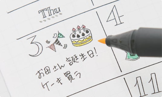自宅のみならず、外出先でも手軽に手帳やノートのアレンジができるようにと登場したスタンプ「nototo join(ノトト ジョイン)」「nototo roller(ノトト ローラー)」に続き、今回10種の絵柄のミニスタンプがひとつになった「nototo 10」が登場。テーマに沿った絵柄により、1本でさまざまな予定に対応できます。ペンケースに収まりの良いスティック型のミニスタンプは、持ち運びも収納も簡単!お家だけでなく外出先でも手軽に手帳時間が楽しめます。ビジネス、家計簿、ボディメイクなど、手帳デコに最適なテーマをご用意しました。また、インキは裏抜けしづらく、油性顔料なので水性ペンでカラフルに色を塗ったデコレーションも楽しめます。
