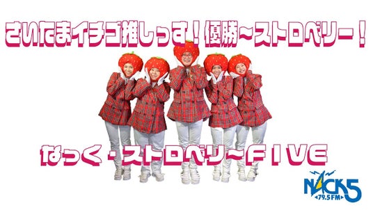 そこで、埼玉県産いちごのおいしさをPRするため、FM NACK5のラジオ番組「GOGOMONZ(ごごもんず)」から、出演者等によるグループ「なっく・ストロベリ~FIVE」が歌うメッセージソング「さいたまイチゴ推しっす!優勝~ストロベリー!」が誕生しました。