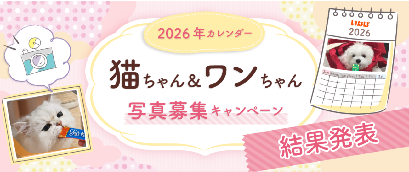 2026年カレンダー 猫ちゃん&ワンちゃん写真 結果発表 いなばペットフード株式会社