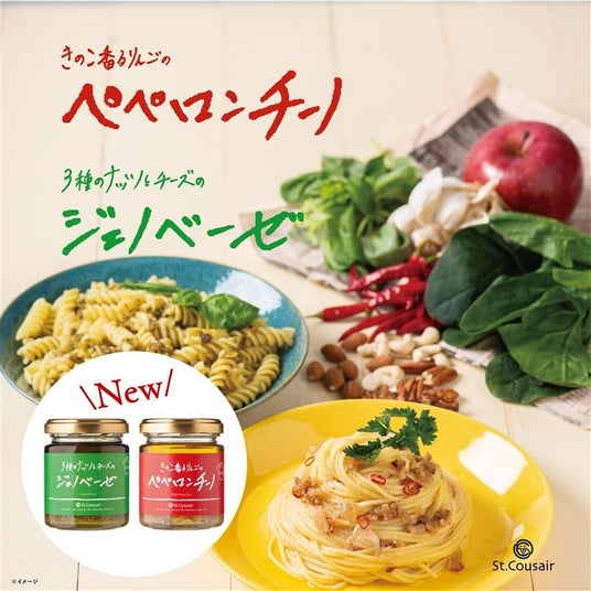 うま味調味料・着色料・保存料不使用の自然な素材の味わいを大切にした「きのこ香るりんごのペペロンチーノ」「3種のナッツとチーズのジェノベーゼ」が発売開始!【サンクゼール】
